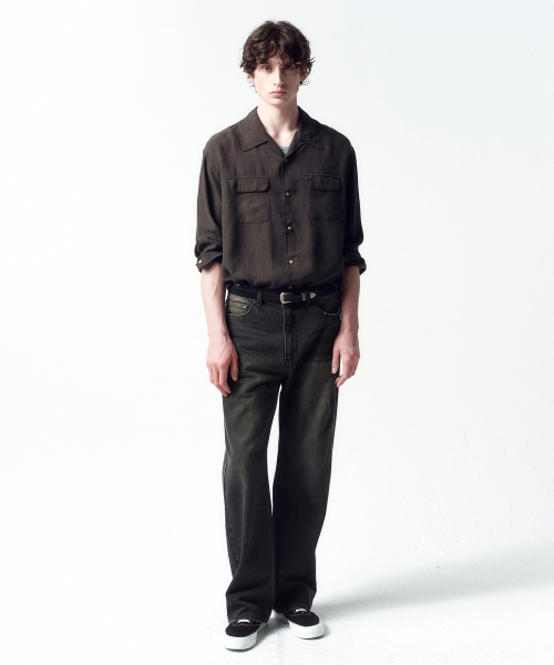 텐셀 개버딘 오픈칼라 셔츠 BLACK