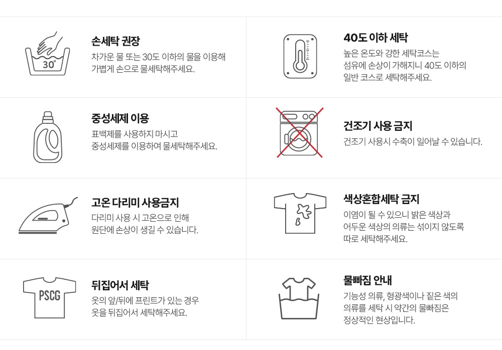 세탁 부주의로 인한 변형은 교환 및 반품이 불가능합니다.
