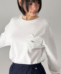 DOT HEART POCKET OVER FIT LONG SLEEVE WHITE