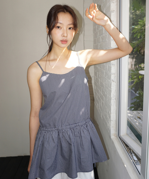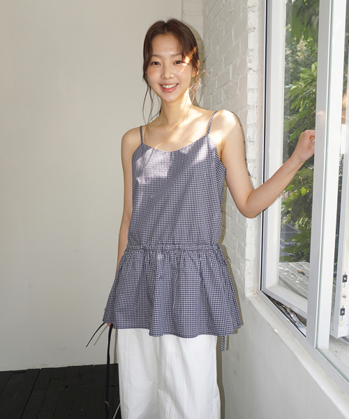 (woman) 썸머 체크 뷔스티에 탑_Navy