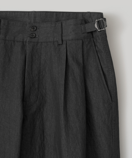 *허리 양쪽의 어져스터로 사이즈 조절, 별도의 벨트 없이 착용 가능