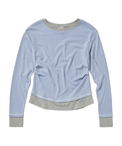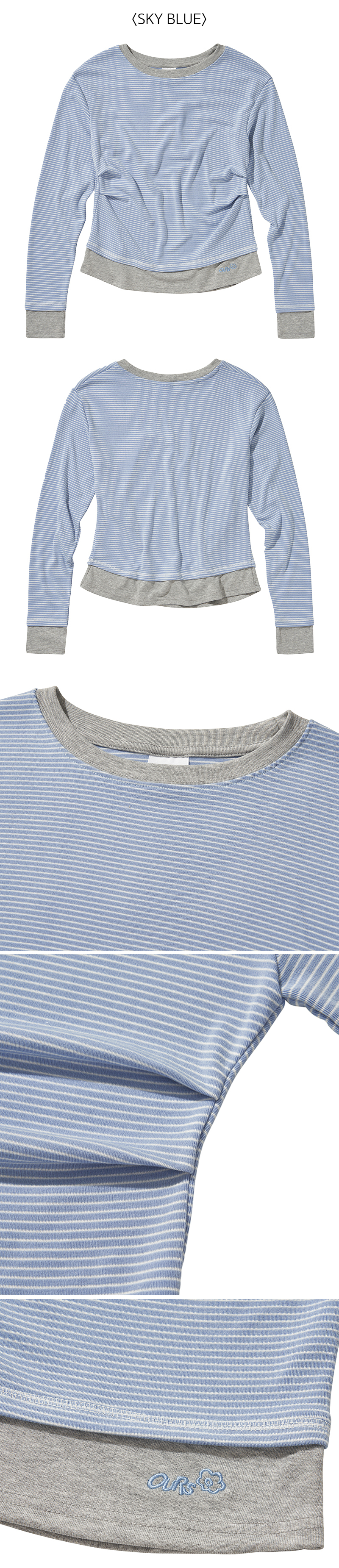 스트라이프 배색 핀턱 긴팔티셔츠 스카이블루