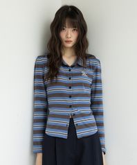 베이직 카라 세미 크롭 셔츠_스트라이프 차콜&블루