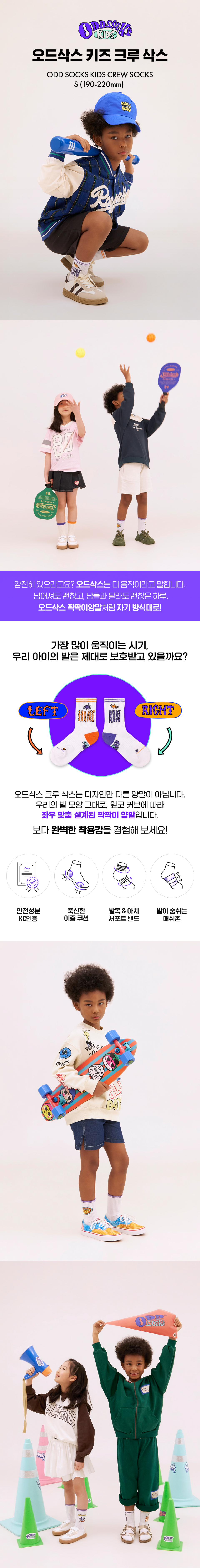 오드삭스 키즈(ODDSOCKS KIDS)는 아이들의 다양한 개성과 다름을 존중하며 유쾌한 디자인과 감각적인 스타일을 제안하는 키즈 패션 브랜드입니다.