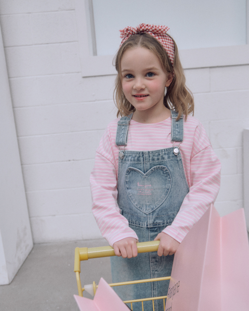 캔디 스트라이프 티(핑크)+러브팝 멜빵 스커트 SET