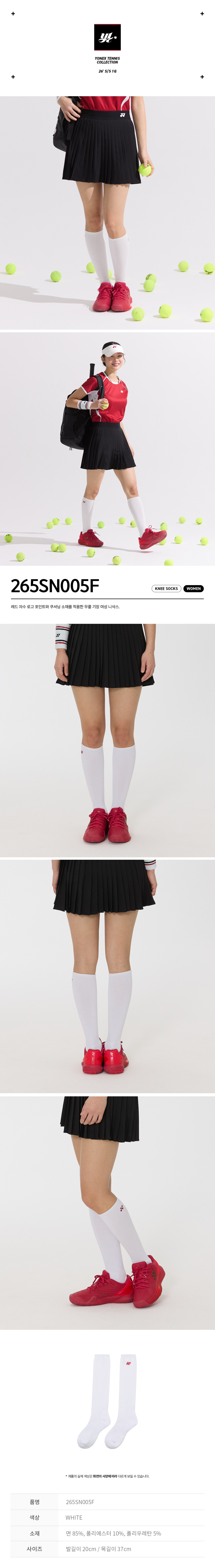 265SN002F 화이트 여성용 시즌 컬러 포인트 테니스 양말