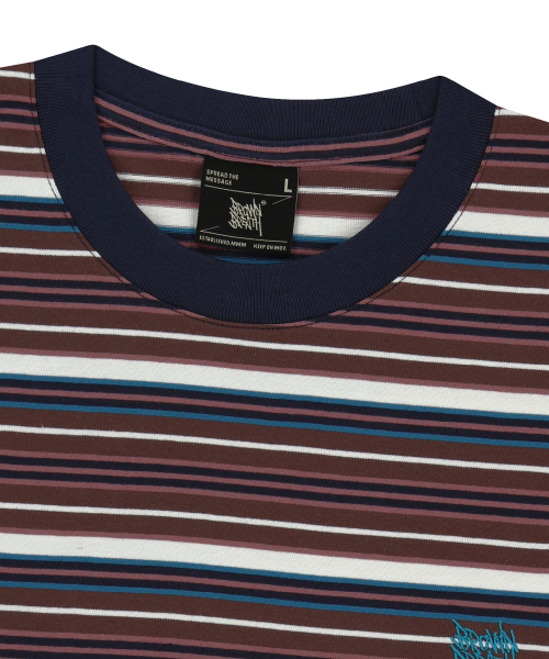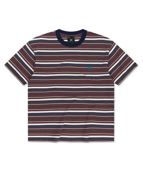 STRIPE CROP TAG TEE - BURGUNDY
