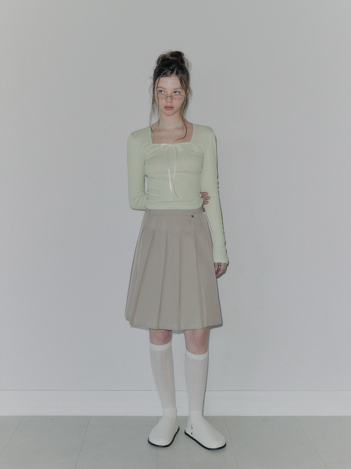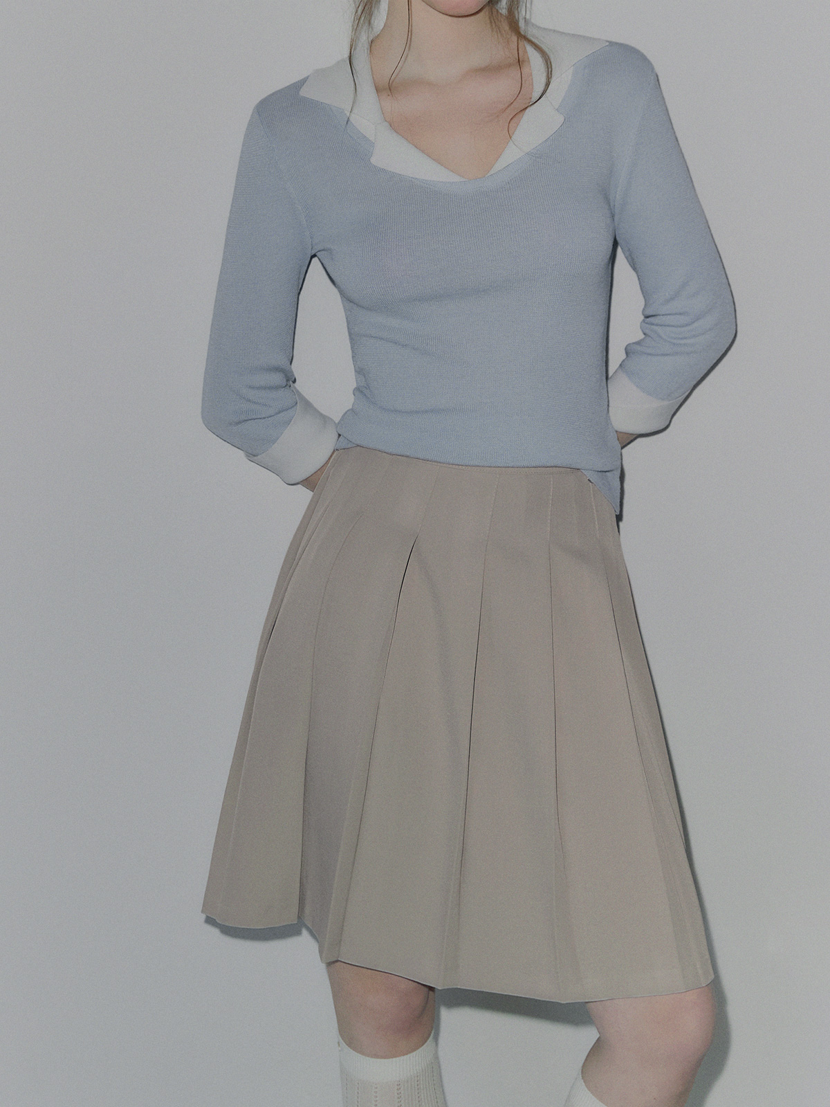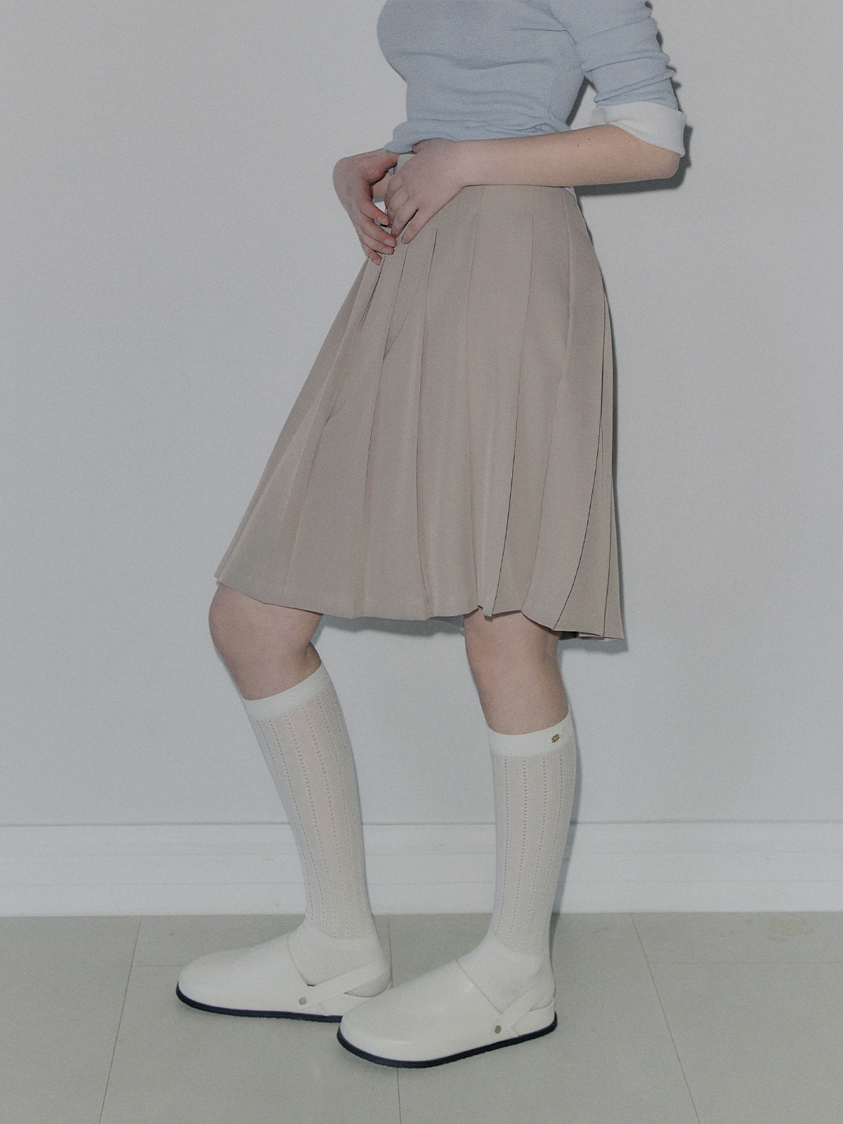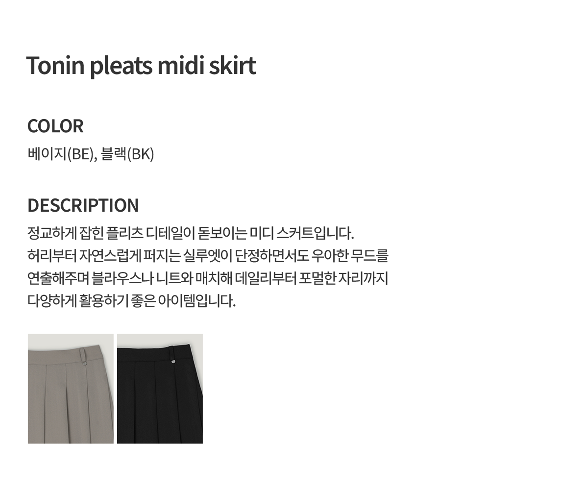 토닌 플리츠 미디 스커트