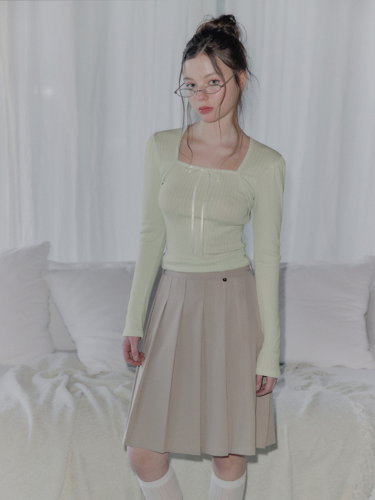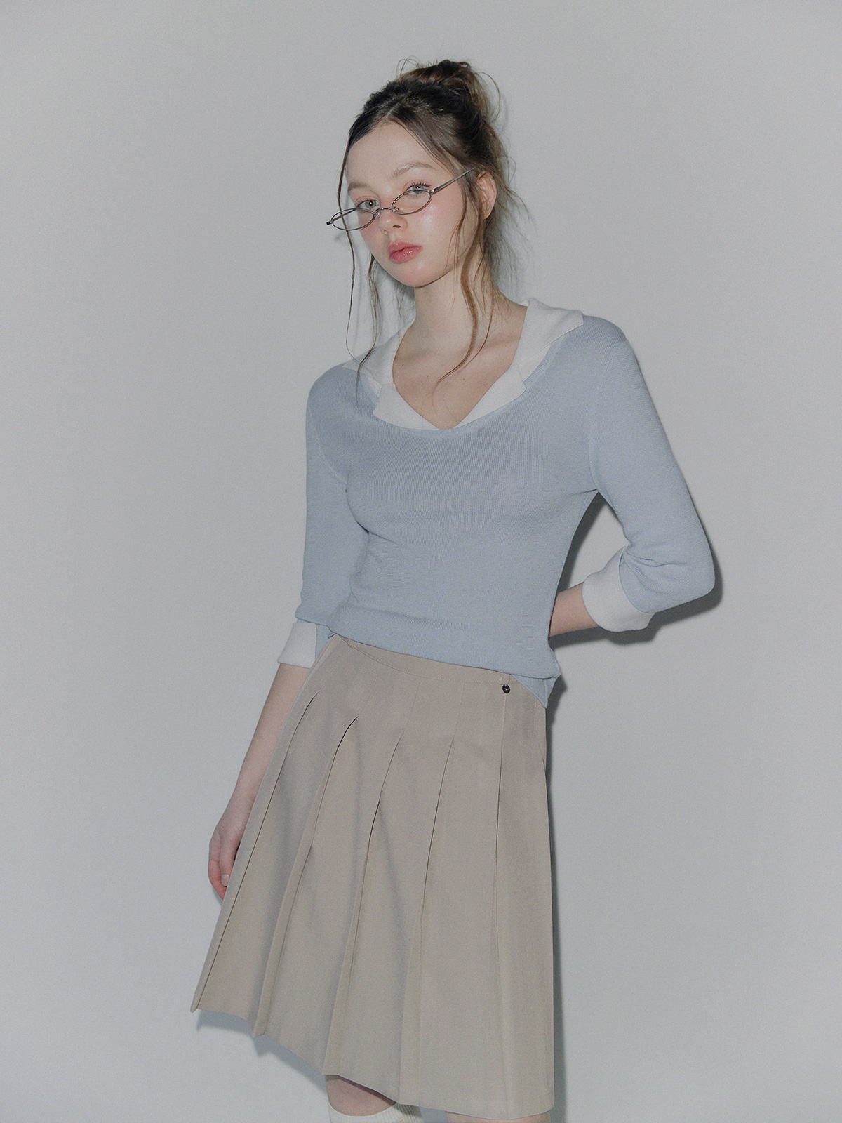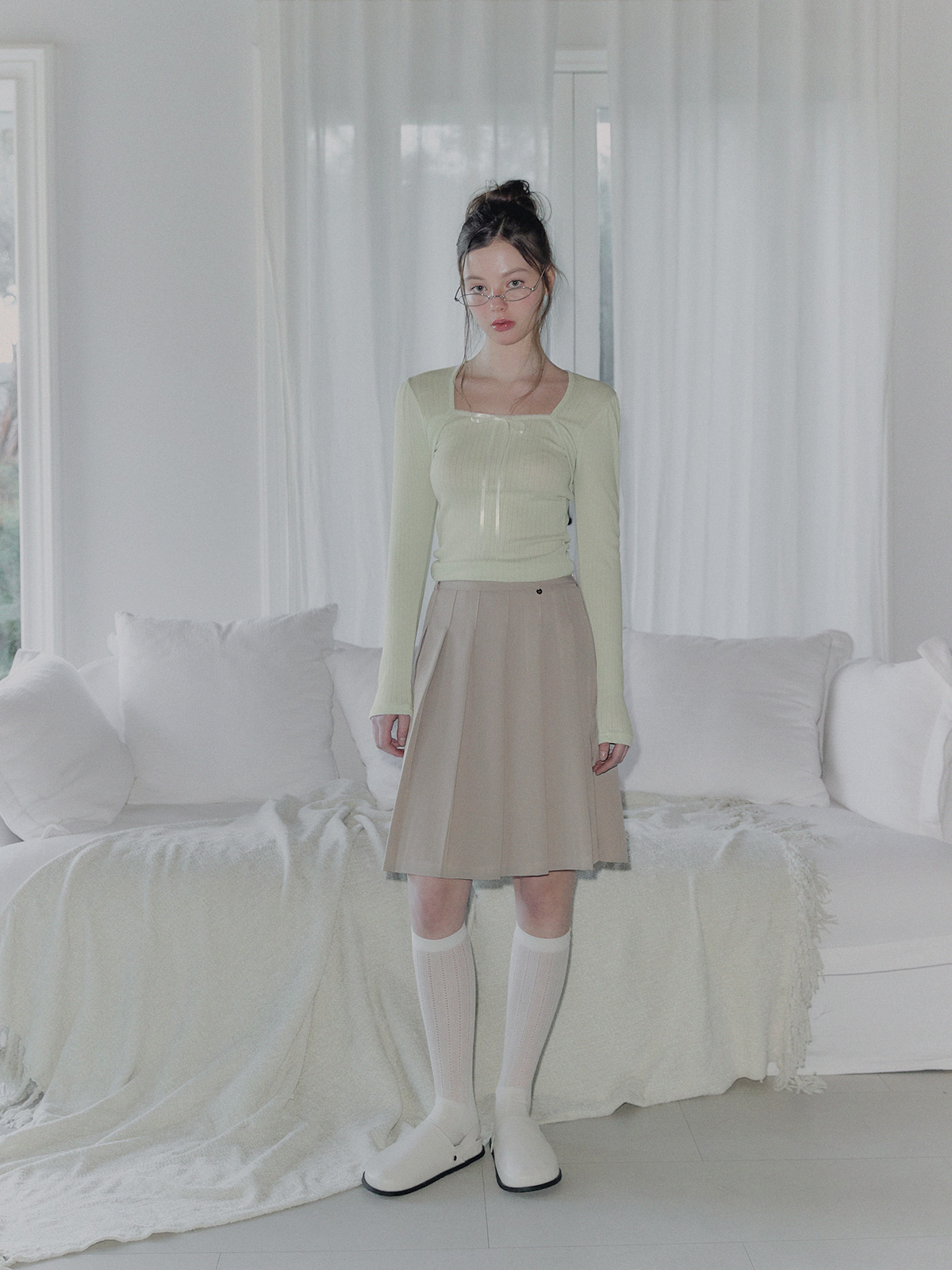 토닌 플리츠 미디 스커트