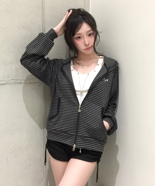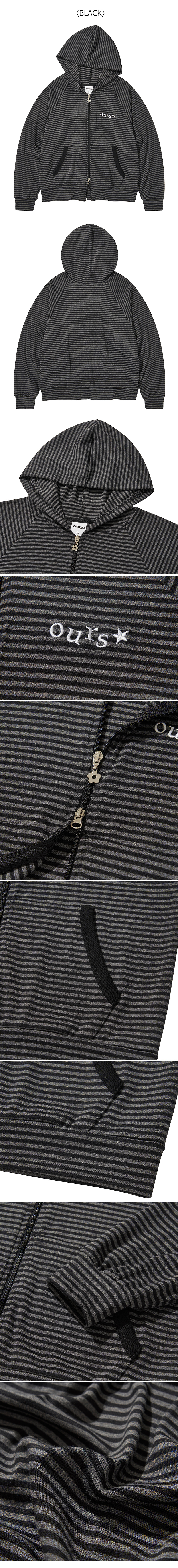 스트라이프 배색 후드집업 블랙