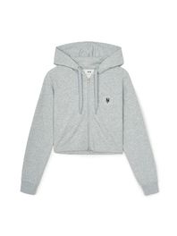 여성 베이직 원형로고 크롭 후드집업 NYM (Melange Grey)