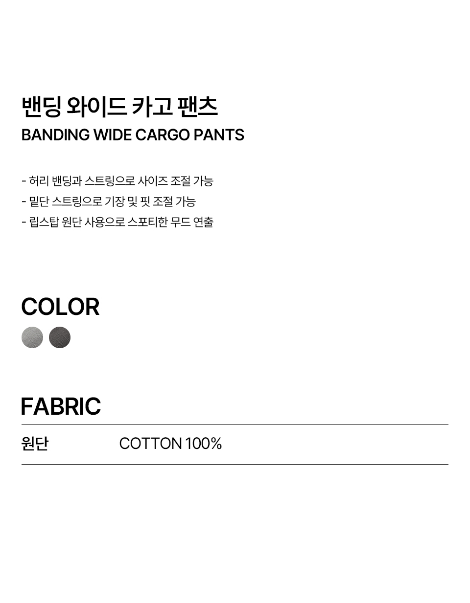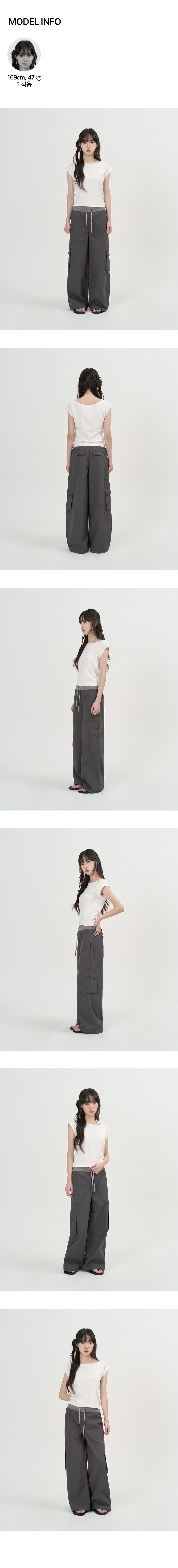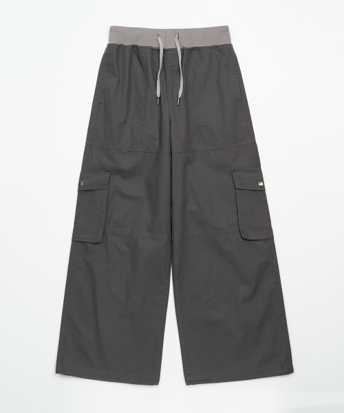 W 밴딩 와이드 카고 팬츠 (CHARCOAL)
