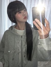크로스 스터드 긴팔 후드집업 그레이