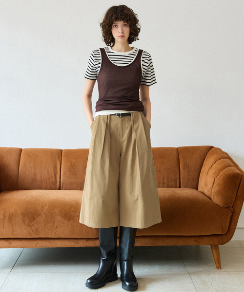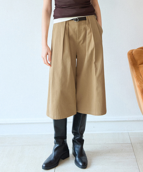 코튼 핀턱 버뮤다 팬츠 [베이지]