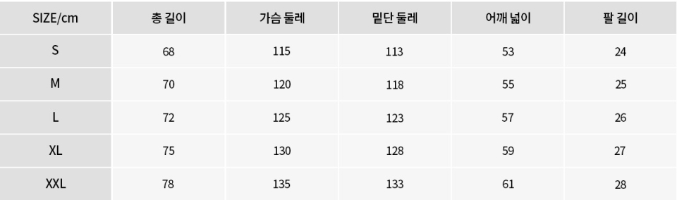 * 해당 사이즈표에 표기한 사이즈와 실제 사이즈는 약 ±0.5 편차가 있습니다.