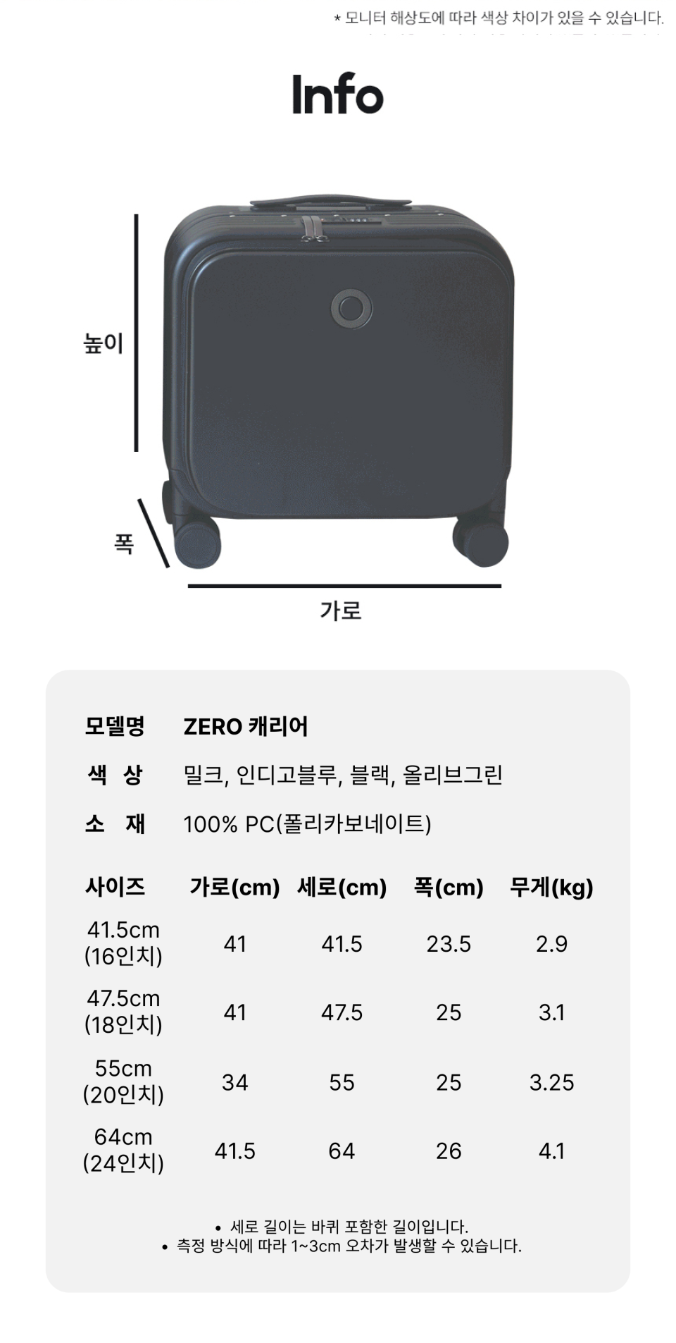 제로 16 18 20 24인치 PC 캐리어 기내 화물용 여행용