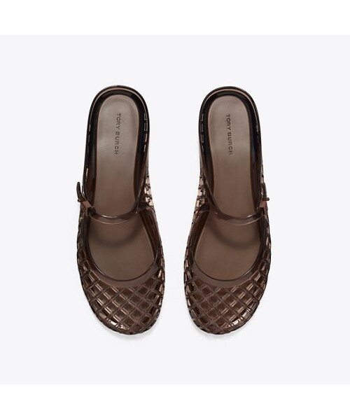 반투명한 젤리 소재로 제작되어 시원하고 산뜻한 느낌을 주는 뮬 스타일의 젤리 슈즈입니다. 발등 위 심플한 스트랩 디자인과 토리버치의 더블 T 로고가 담긴 사각 골드 장식이 돋보입니다. 가벼운 무게와 부드러운 착용감으로 편안하게 신을 수 있으며, 캐주얼부터 페미닌룩까지 다양한 스타일에 매치하여 개성을 드러낼 수 있는 아이템입니다.