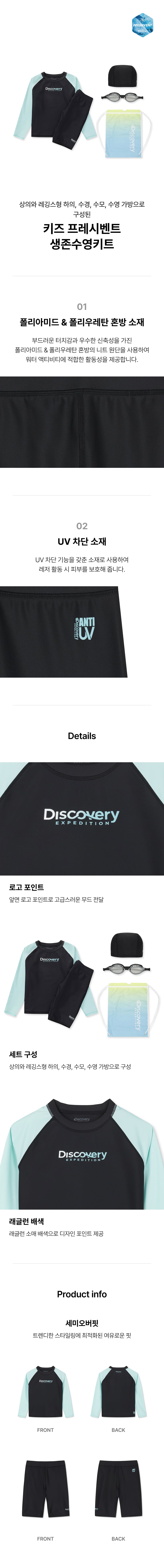 컬러 : S/BLUE 상품코드: DKSZ71063-SBS 상품명: 키즈 프레시벤트 생존수영키트 (SKY BLUE) 소재: 겉감1 나일론83% 겉감1 폴리우레탄17% 겉감2 폴리에스터73% 겉감2 폴리우레탄27%