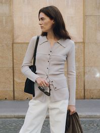 [SET] V-neck Open Collar Slim Cardigan & Bustier SS5AP344_2color