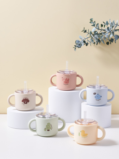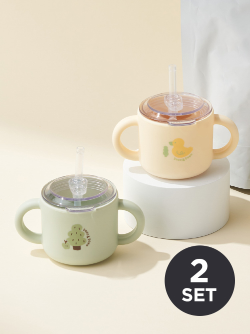 맘마존 완전밀폐 실리콘 아기 빨대컵 2set