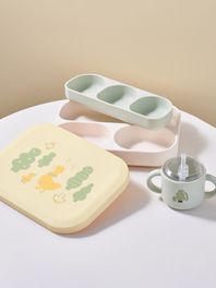 맘마존 올인원 실리콘 이유식 흡착식판+완전밀폐 빨대컵 세트