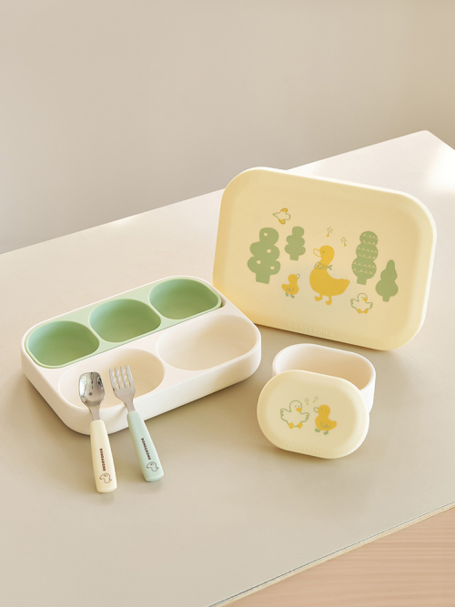 맘마존 올인원 실리콘 이유식 흡착식판+완전밀폐 빨대컵 세트