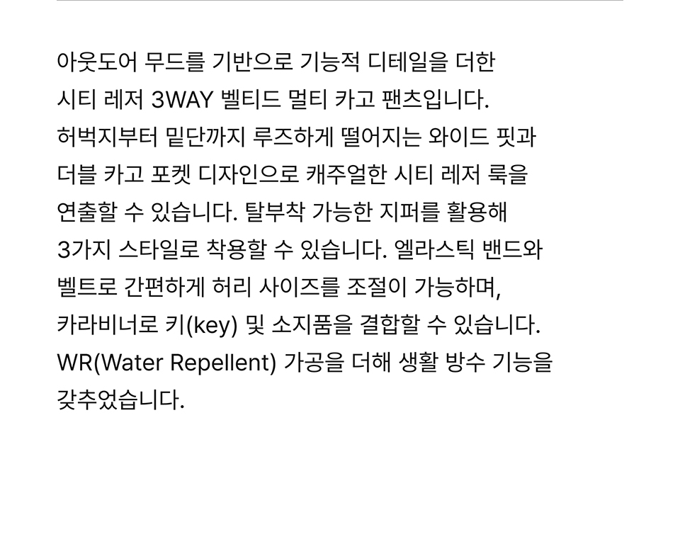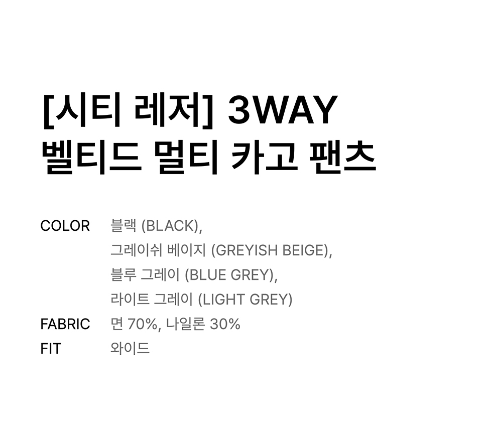 [시티 레저] 3WAY 벨티드 멀티 카고 팬츠 (4 colors)