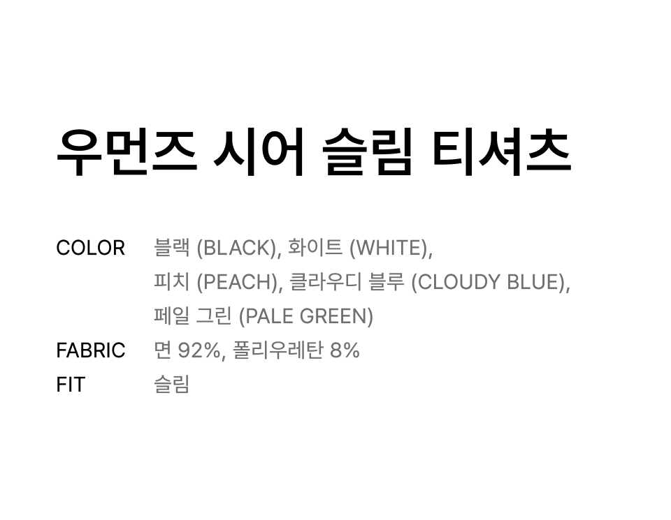 우먼즈 시어 슬림 티셔츠 (5 colors)