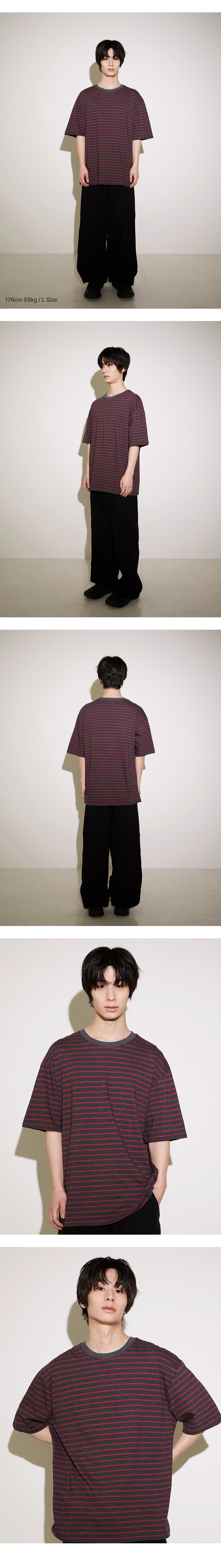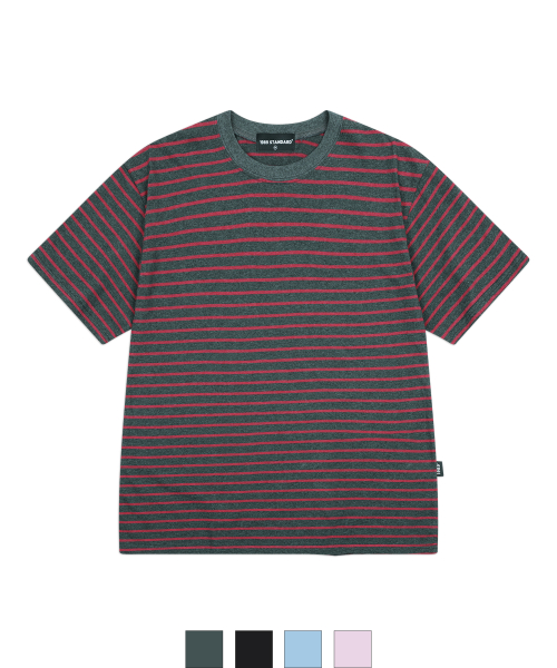 투톤 스트라이프 오버핏 반소매(SSTSTDBASIC)