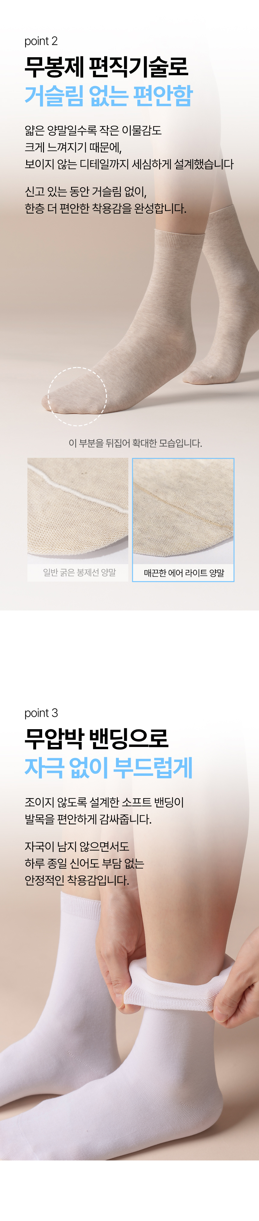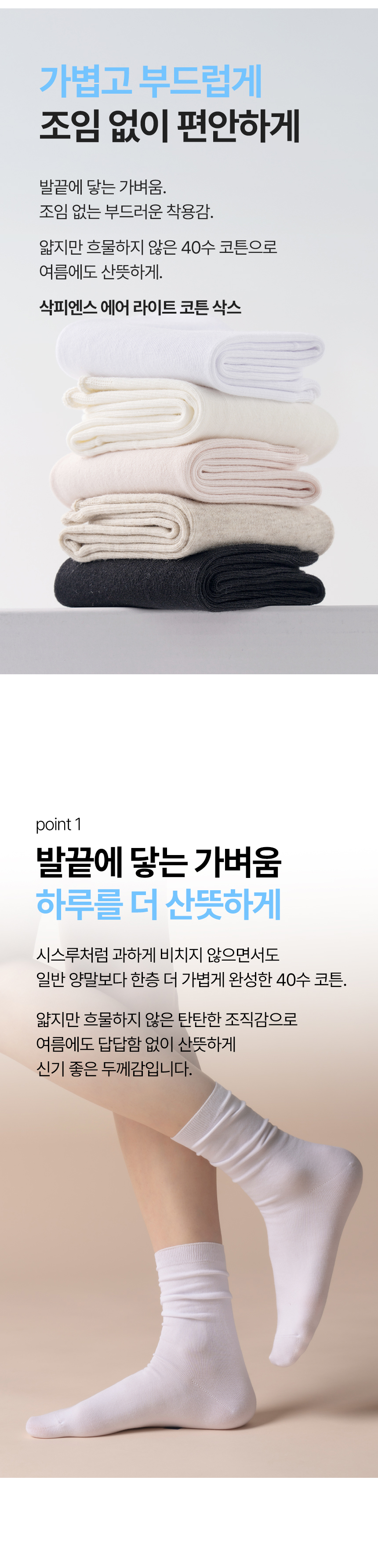 [5팩] 얇은 면 40수 무압박 심리스 양말 - 컬러선택형