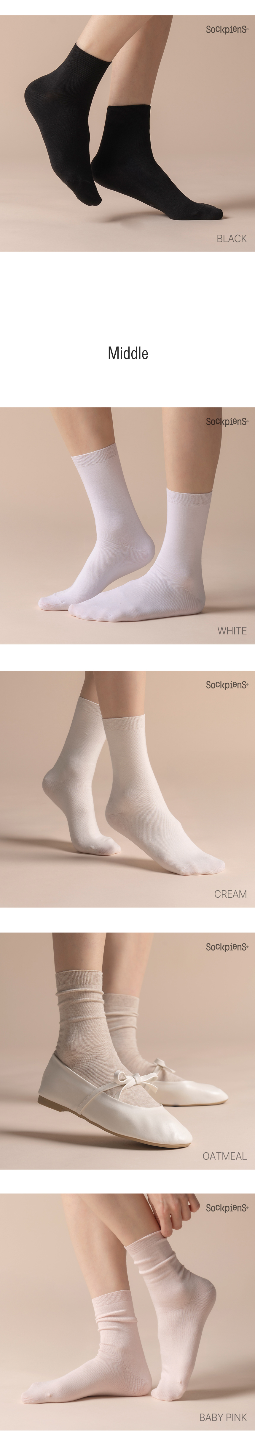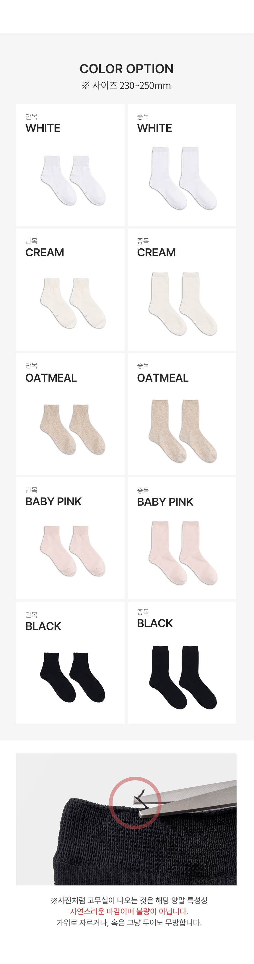 [8팩] 무압박 밴드 여자 무지 중목 양말