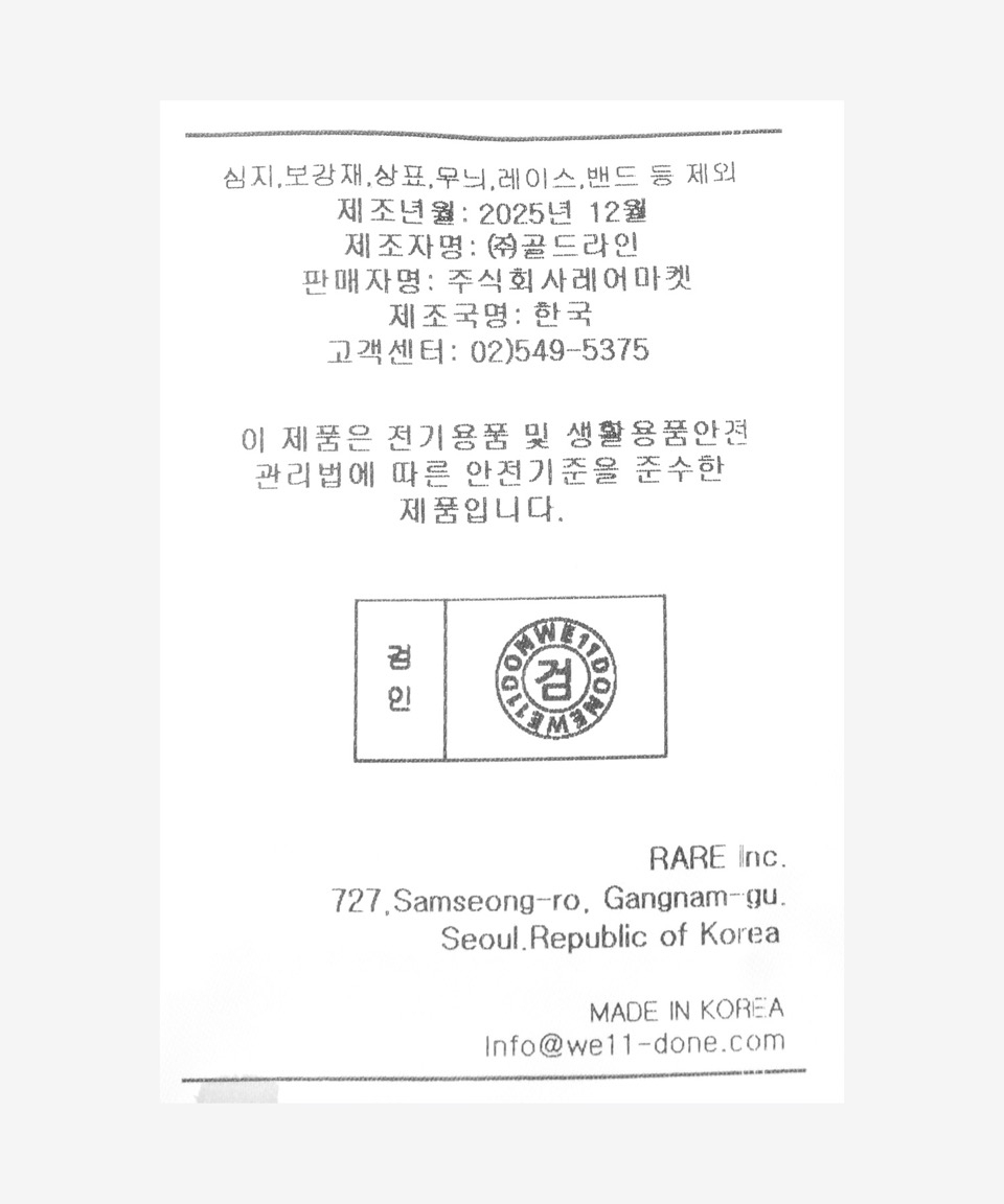 웰던(WE11DONE)은 경계의 미학을 탐구하며 정제된 디자인과 대담한 디테일로 동시대적 스타일을 제안하는 서울 기반의 하이엔드 패션 브랜드입니다.