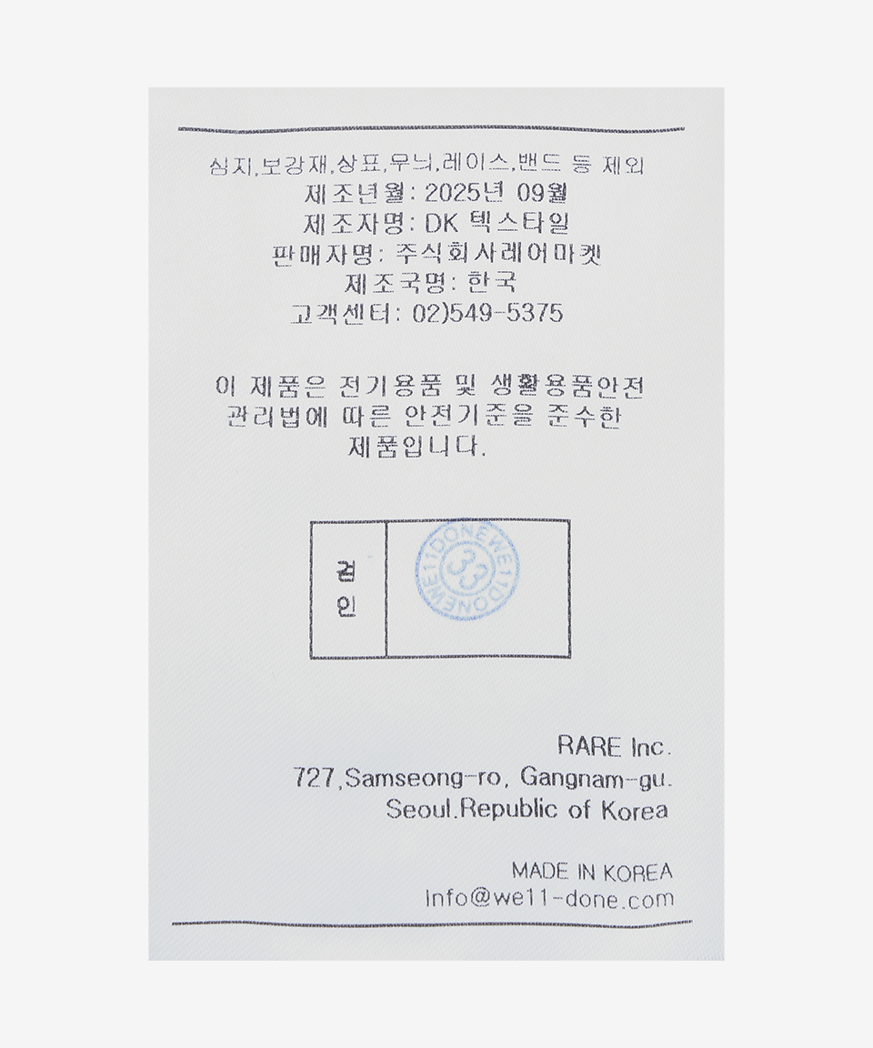 웰던(WE11DONE)은 경계의 미학을 탐구하며 정제된 디자인과 대담한 디테일로 동시대적 스타일을 제안하는 서울 기반의 하이엔드 패션 브랜드입니다.