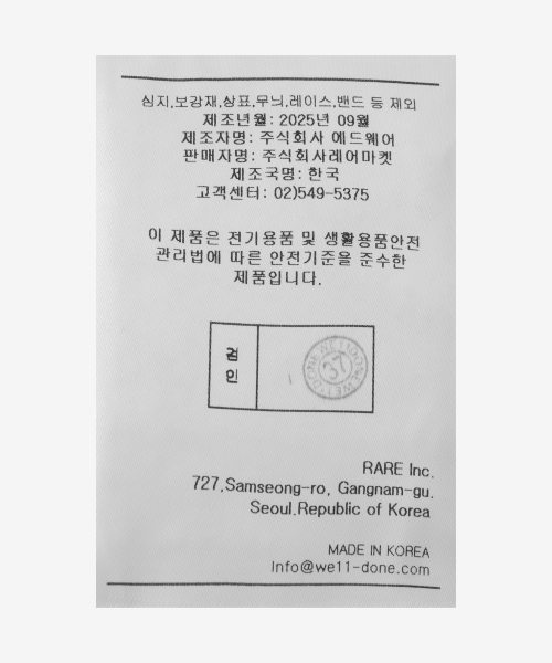웰던(WE11DONE)은 경계의 미학을 탐구하며 정제된 디자인과 대담한 디테일로 동시대적 스타일을 제안하는 서울 기반의 하이엔드 패션 브랜드입니다.
