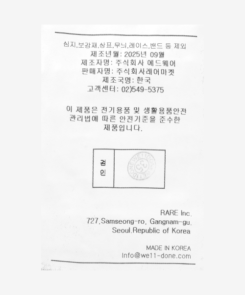 웰던(WE11DONE)은 경계의 미학을 탐구하며 정제된 디자인과 대담한 디테일로 동시대적 스타일을 제안하는 서울 기반의 하이엔드 패션 브랜드입니다.