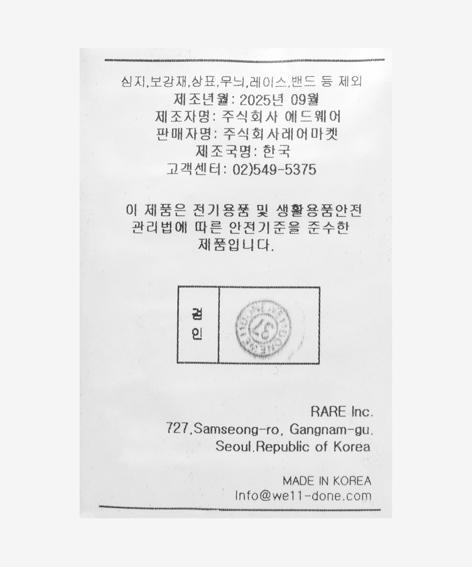 웰던(WE11DONE)은 경계의 미학을 탐구하며 정제된 디자인과 대담한 디테일로 동시대적 스타일을 제안하는 서울 기반의 하이엔드 패션 브랜드입니다.