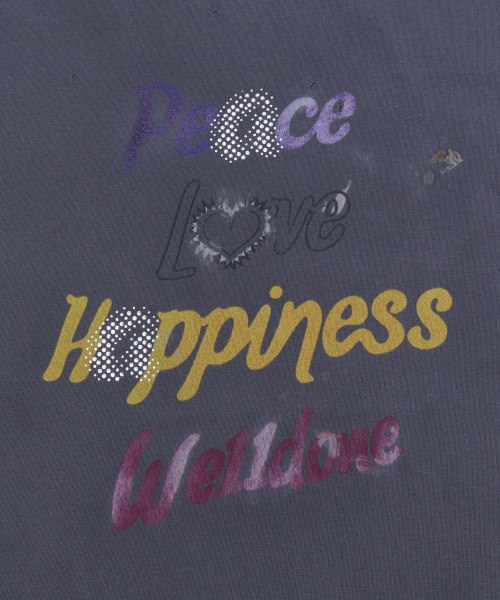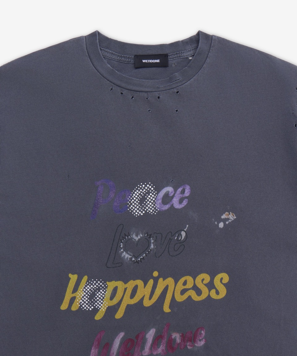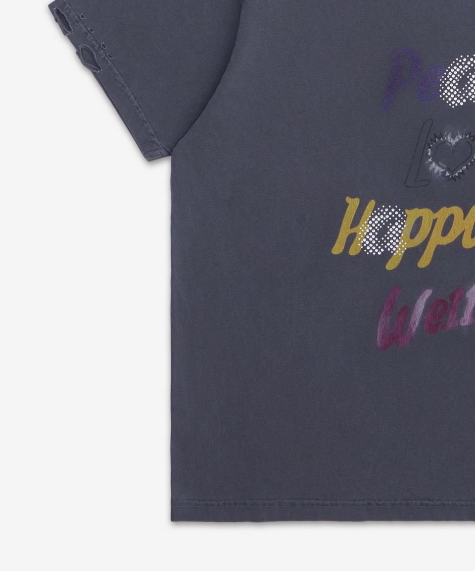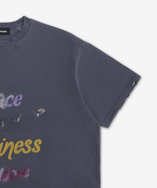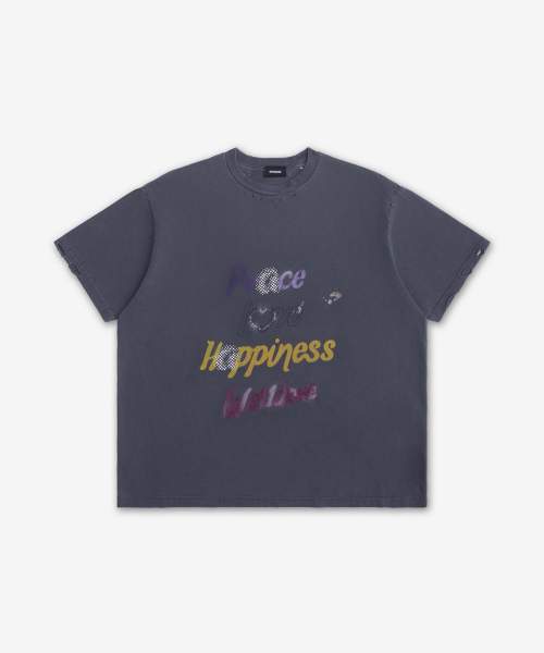 레터링 프린트 디스트레스드 반소매 티셔츠 - 차콜 / WDTT024705UCH