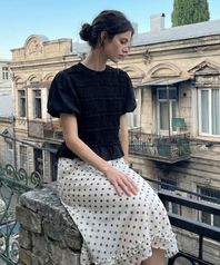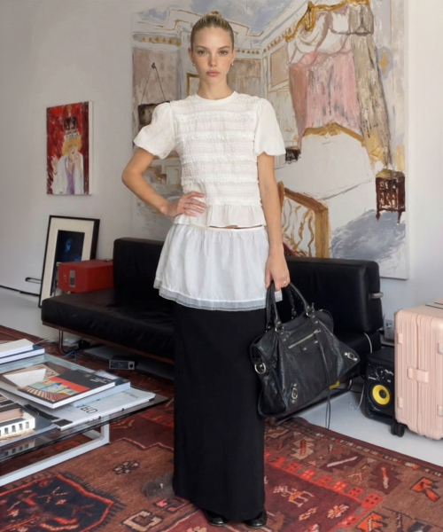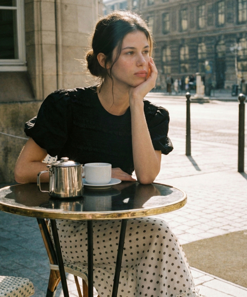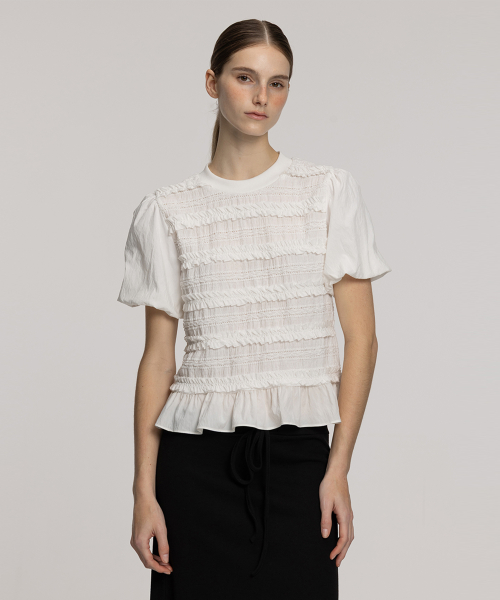 실크 프릴 퍼프 슬리브 블라우스 (2C)