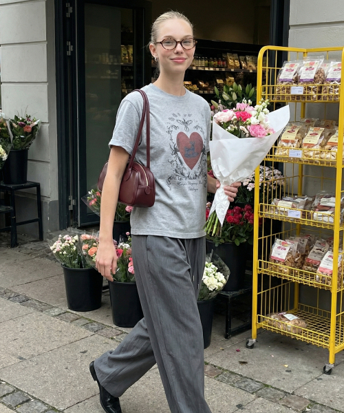 플라워 인터록 셔링 슬리브 티셔츠