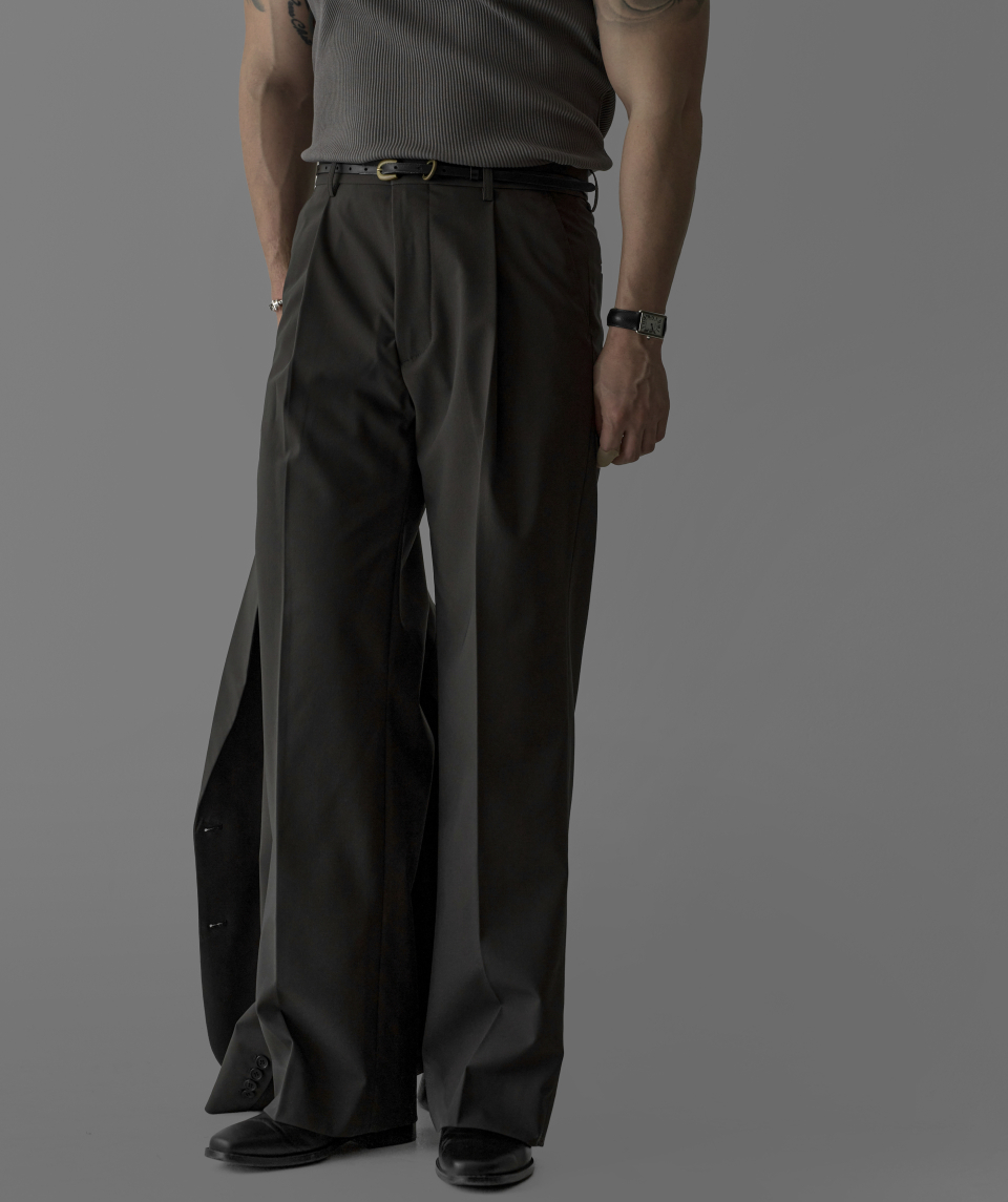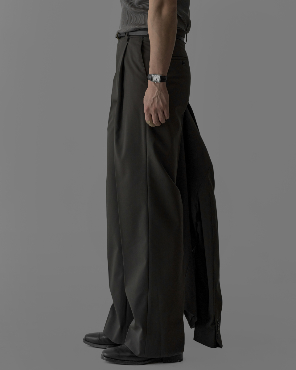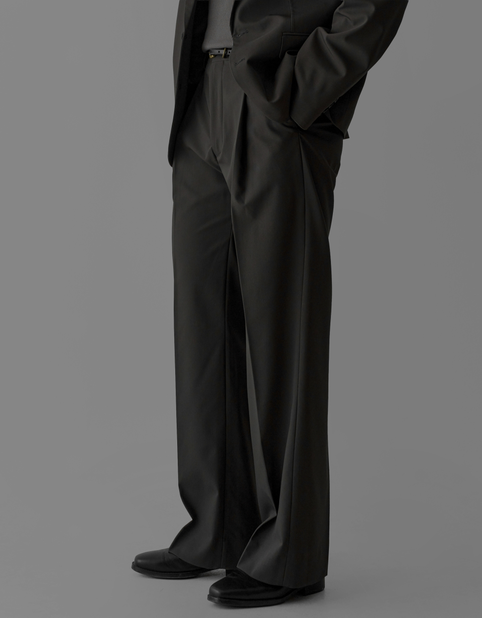 - 전면부 원턱과 벨트 안쪽 허리 밴드 커튼 디테일