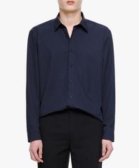 - 폴리에스터·아세테이트 혼방 원단을 사용해 매끄러운 터치감과 안정적인 실루엣 구현