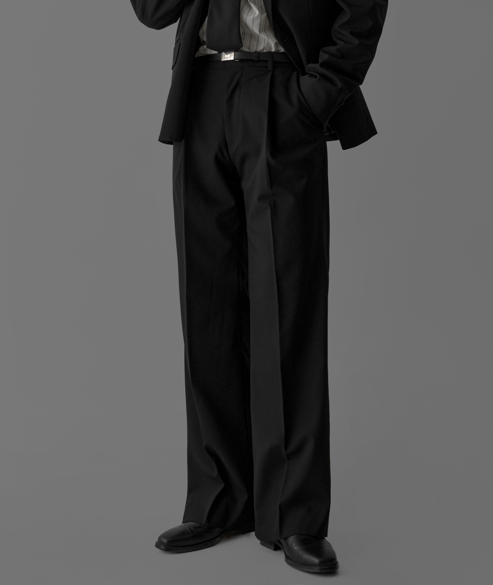 - 전면부 원턱과 벨트 안쪽 허리 밴드 커튼 디테일