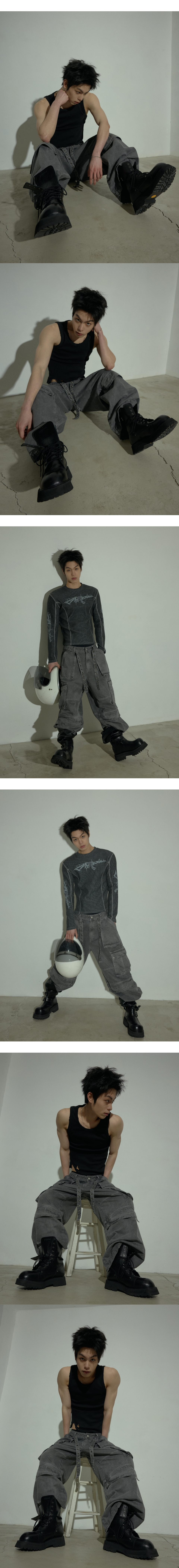 [0123] 새깅 밴드 와이드 스웨트 팬츠 - 그레이