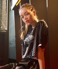 우먼스 글로시 블록코어 크롭 숏슬리브 블랙 GA6626 BK