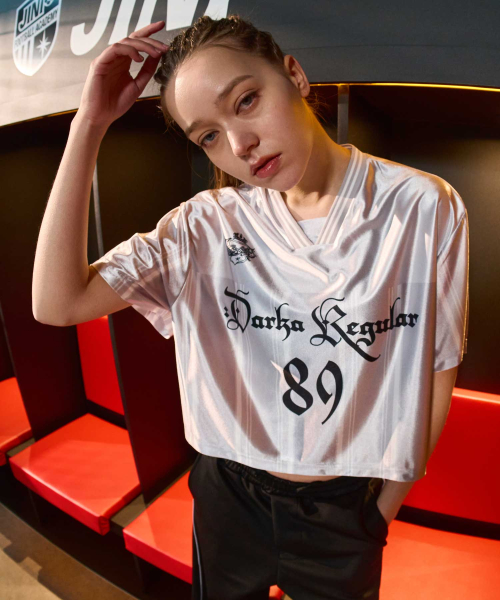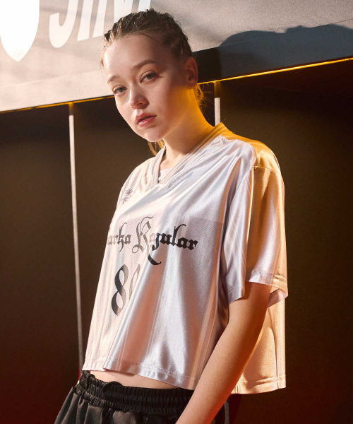 우먼스 글로시 블록코어 크롭 숏슬리브 실버 GA6627 SV