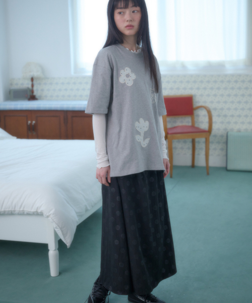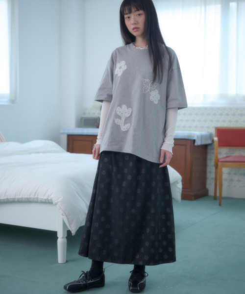 Dot skirt 플레어 맥시 롱스커트 ASK401 (다크그레이)