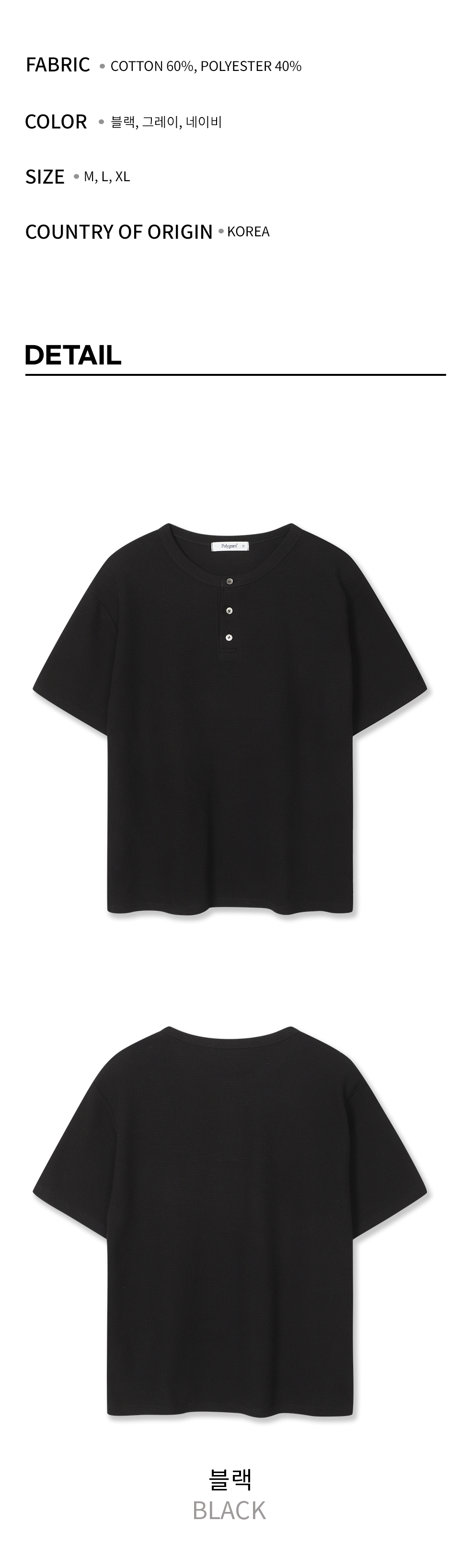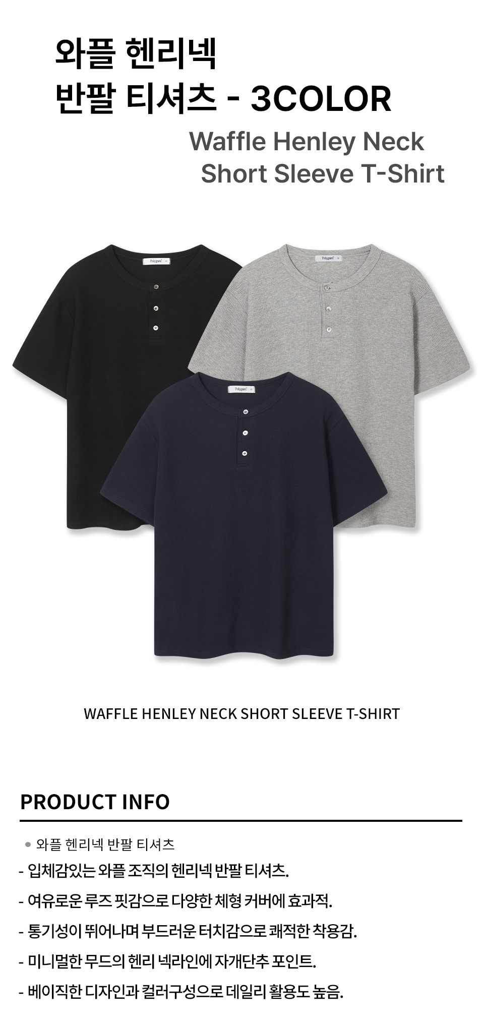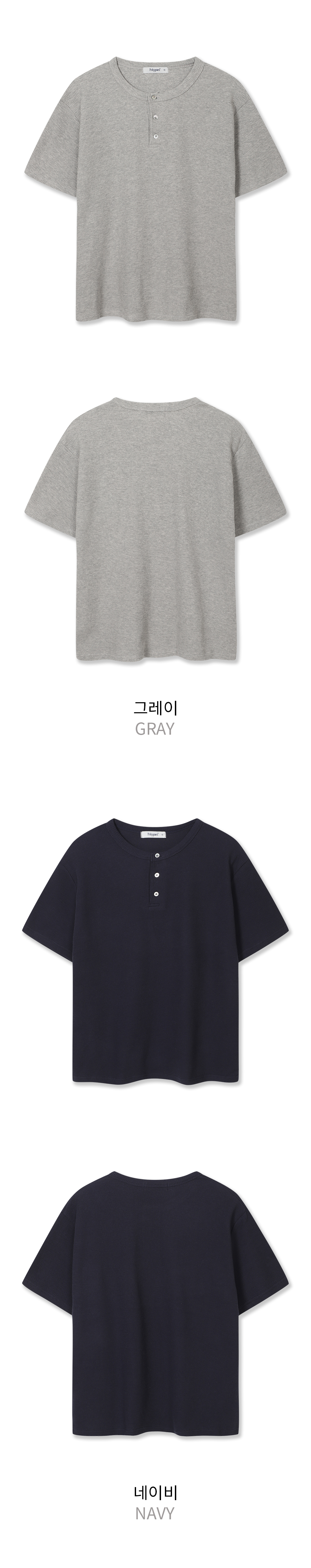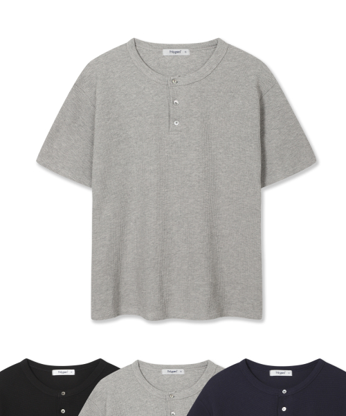 와플 헨리넥 반팔 티셔츠 - 3 COLOR