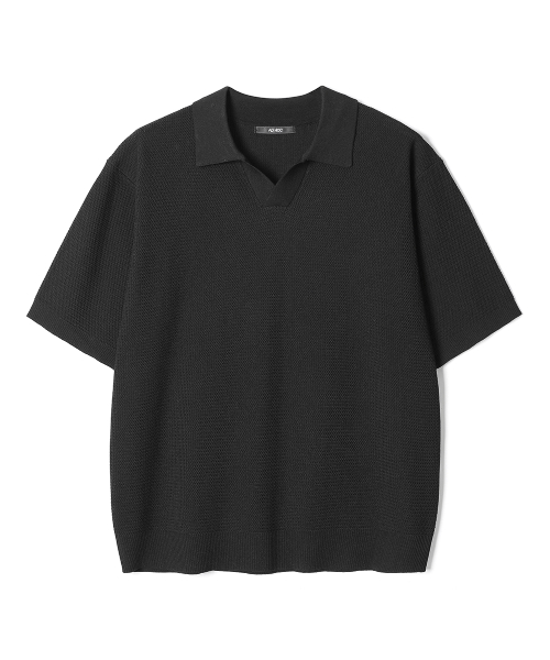 남성 썸머 오픈 카라 니트 (BLACK) (HB4SKA2)