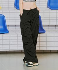 N242WPT110 여성 우븐 와이드 파라슈트 팬츠 CARBON BLACK