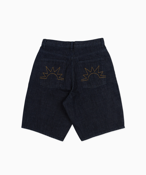 헬로선라이즈의 심볼 로고가 포인트인 와이드 쇼츠 5포켓 팬츠입니다.